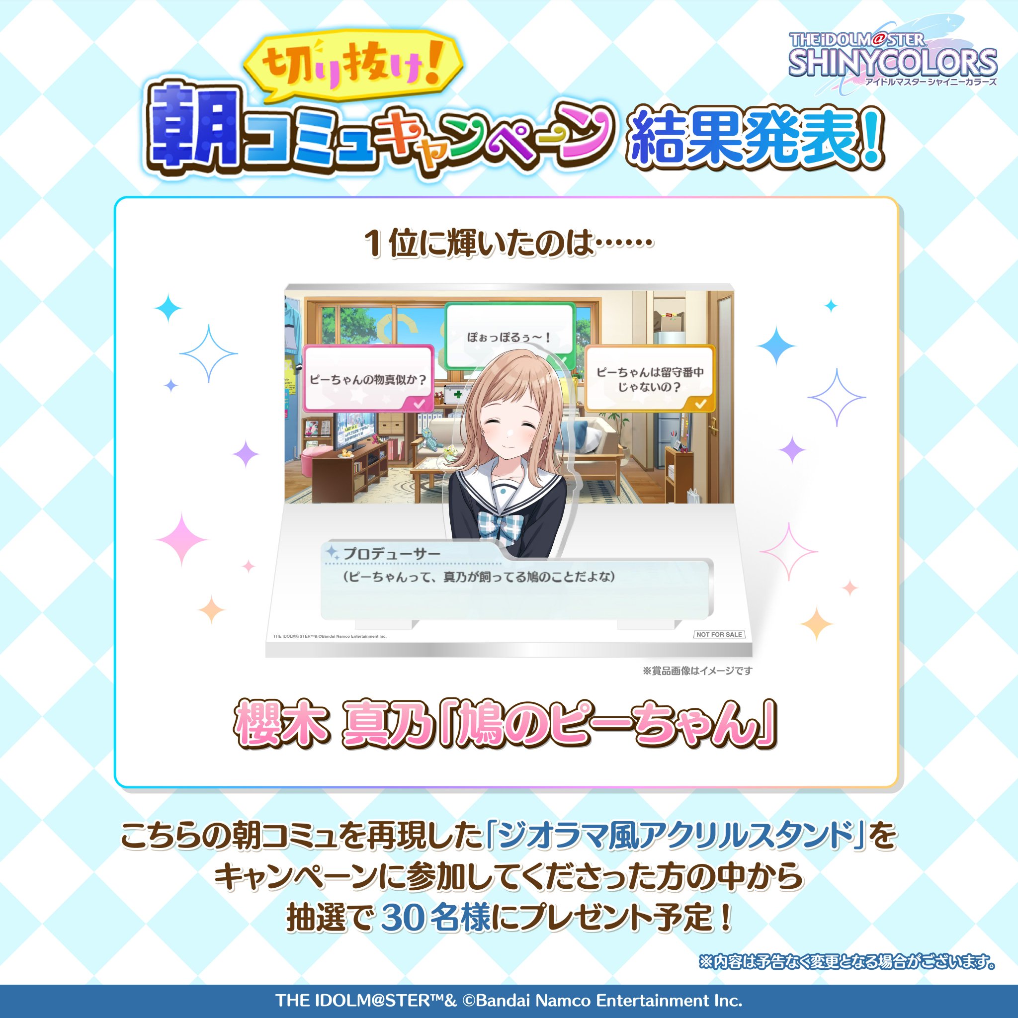 お申込番号:CNZEW29697073 /メーカー:当選品 朝コミュ 鳩のピーちゃん 櫻木真乃 アクスタ 非売品!限定 激レア 当選品 /型番:70734787 /JANコード:22865470 /アズワン/ナビス品番: