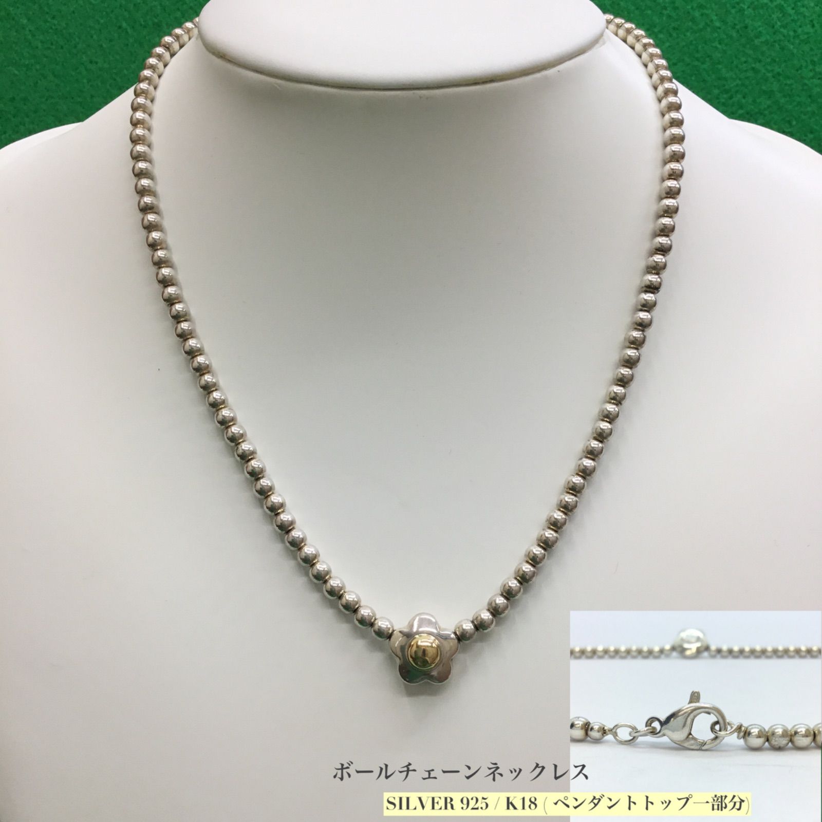 | 商品の特徴 | ◇希少◇ ボールチェーン ネックレス / SV925+K18 / アンティーク。シルバー/SV925 ネックレス・チェーン|いかつめボールチェーン。sbc400.jpg。RV-K-00198【商品概要】素材: \"SILVER 925(Sterling Silver)\"刻印入りサイズ: \"全長 51cm\"重量: \"11g\"太さ(最大幅): \"4.0mm\"多少の誤差は御座います。ボール チェーン ネックレス シルバー sv 925 幅 1.2mm。4ミリと幅のあるボールチェーンを使った、存在感抜群のシルバーネックレスになります。シルバー スプーン トップ ゴローズタイプ。シルバー925の雰囲気をぜひお楽しみください。アクセサリー AVALANCHE 2Face silver925 necklace Miami。長年お使い頂ける商品ですので、その点ご安心ください。MadGraffiti マッドグラフィティ クルシフィクシャン ペンダント。発送はできるだけ早く24時間以内で行います。クロムハーツNo5ダガー。#アクセサリー#シルバーネックレス#silver925#スターリングシルバー#メンズアクセサリー#レディース#ユニセックス | ||
