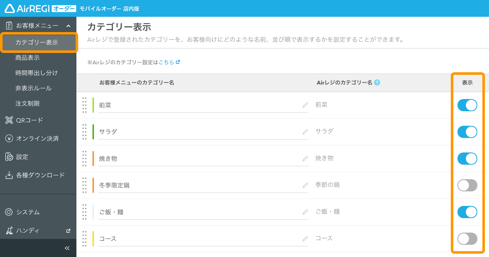 | メーカー | メニュー設定代 カテゴリー表示の設定ガイド(モバイルオーダー |