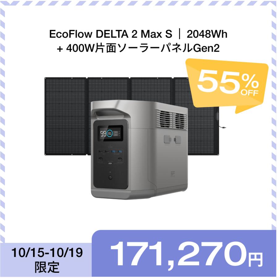 - 防災関連グッズ > 発電機・ポータブル電源 > EcoFlow ポータブル電源 DELTA2 Max Sキャンプ バッテリー ECOFLOW ポータブル電源 大容量 DELTA 2 Max S 2048Wh + 400Wソーラー