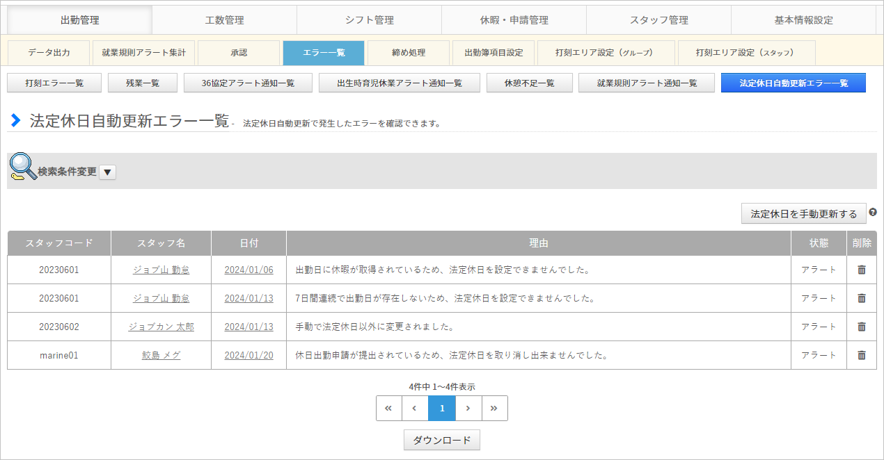 | メーカー | 【1/2使用】ひと休みページ 法定休日自動更新エラー一覧 |