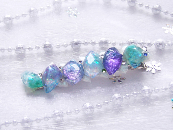 - レディース > ヘアアクセサリー > 美品accaアッカネイビーマーブルお花クリスタルヘアクリップLサイズ/バレッタ 石の花 ヘアクリップ-菫青石- 鉱石風 バレッタ変更可 ヘアクリップ