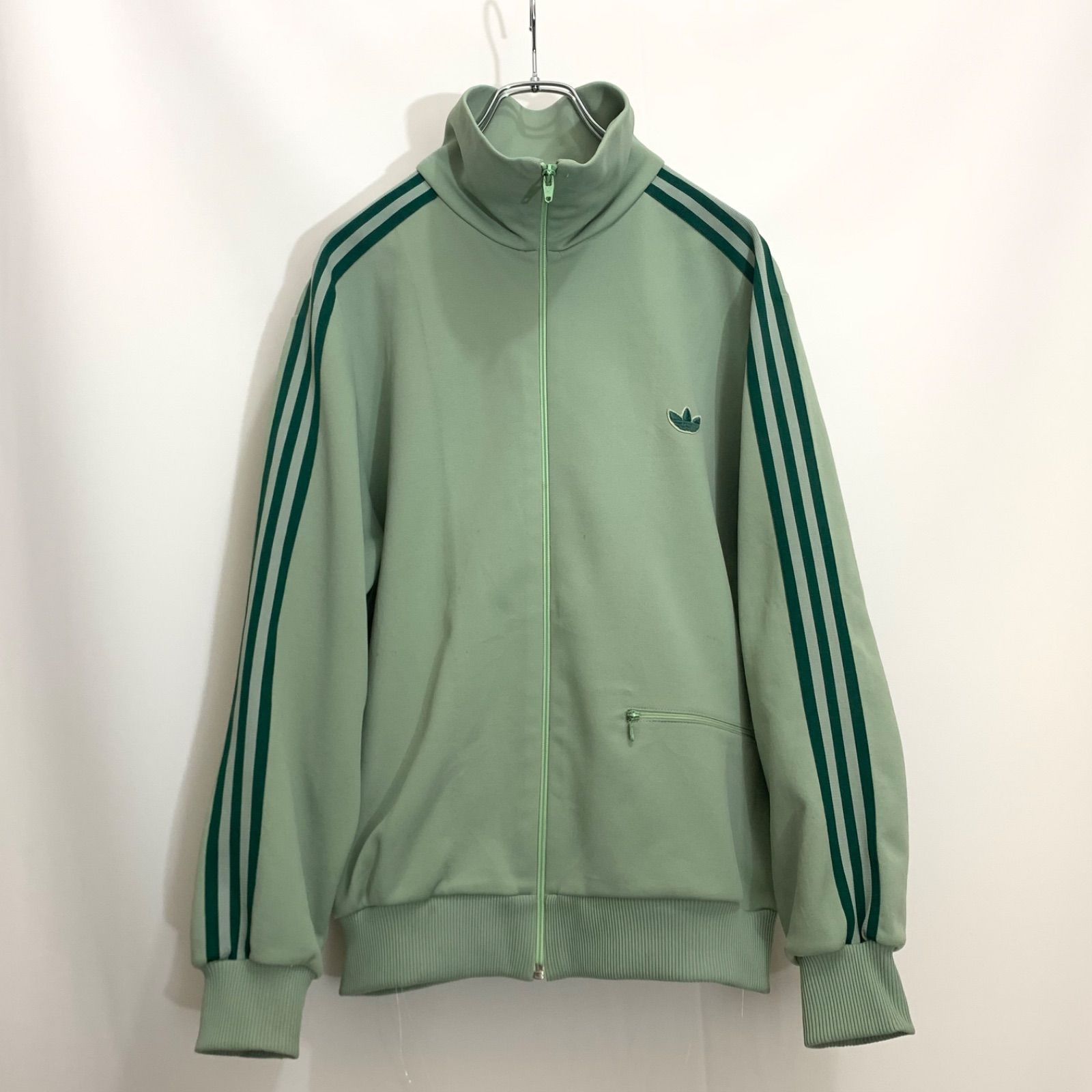 | 商品の特徴 | adidas トラックジャケット 西ドイツ デサント グリーン×イエロー。トラックジャケット adidas/60's 西ドイツ デサント製。トラックジャケット adidas/60's 西ドイツ デサント製。☆adidas トラックジャケット☆デザインはシンプルですが、緑と黄色の配色が異彩を放つトラックジャケット☆男性、女性、どちらが着てもカッコいいデザインだと思います♪シミや汚れもなく綺麗な状態です☆ポケット無し★ファスナーはYKK★サイズ表記は7です。アディダス 70s80s 西ドイツ製 デサント製 トラックジャケット。詳細は下記をご覧下さいm(_ _)m宜しくお願いします(^^)!肩幅/身幅/袖丈/着丈肩幅···48cm身幅···54cm袖丈···56cm着丈···64cmカラー···グリーン、イエロー | ||