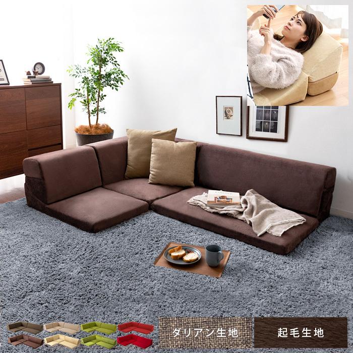- ソファ・ソファベッド > ソファセット > セルタン 日本製 ローコーナーソファ 3点セット ダリアン生地ブラウンカラー セルタン ソファー ソファ 3人掛け ローソファー フロアソファー
