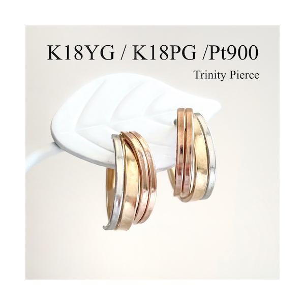 - レディース > アクセサリー > 【新品未使用】トリニティ 3連 ピアス 両耳 プラチナ pt900 K18 トリニティ ピアス プラチナ 18金地金ピアス フープピアス K18 Pt900