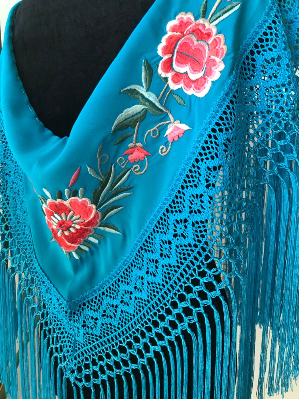 - ダンス・バレエ > フラメンコ > 【フェミニン☆刺繍】フラメンコ マントンシージョ 刺繍 ターコイズ 2way フェミニン☆刺繍】フラメンコ マントンシージョ 刺繍 ターコイズ 2way