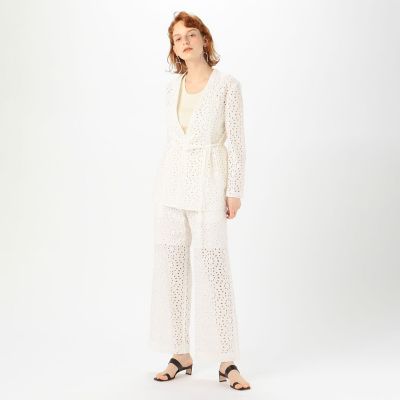 - レディース > ジャケット・アウター > ドゥロワー ジャガード レース ノーカラージャケット 柄 ホワイト 白 ドゥロワー ジャガード レース ノーカラージャケット 柄 ホワイト 白