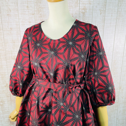 | メーカー | 赤系麻の葉柄大島紬ふんわり袖テントライン・美ラインワンピースM~L |