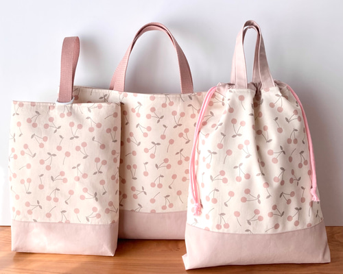 - ベビー・キッズ > 手提げ・レッスンバッグ・入園グッズ > cheri✳︎ ヌビ さくらんぼ レッスンバッグ 上履き袋 体操着袋 cheri✳︎ ヌビ さくらんぼ レッスンバッグ 上履き袋 体操着袋 cheri