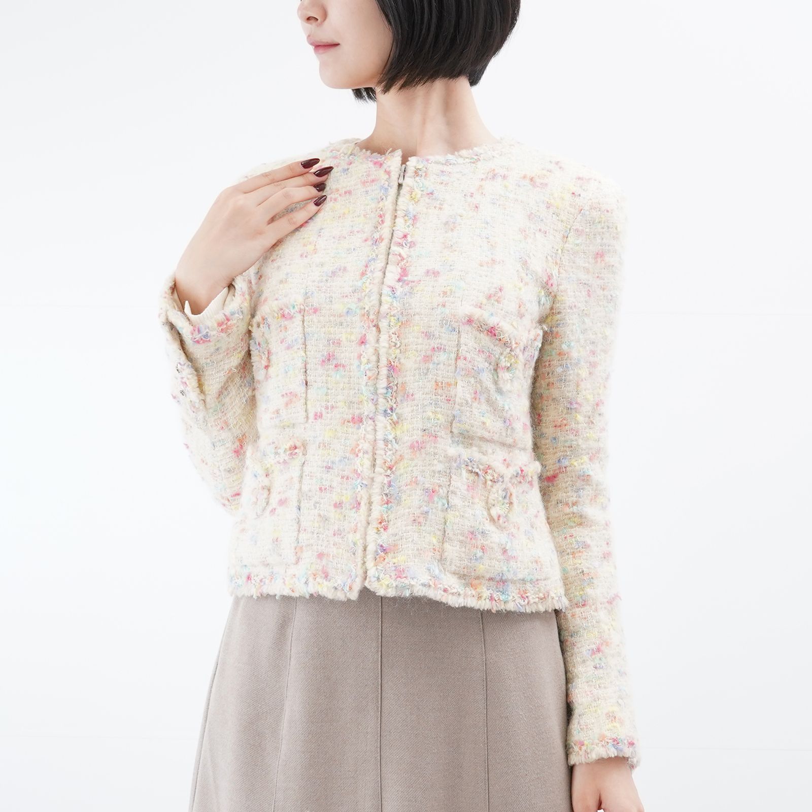 - レディース > ジャケット・アウター > 未使用品 シャネル 花柄 レース ジャケット ノーカラー 36 ツイード 未使用品 シャネル 花柄 レース ジャケット ノーカラー 36 ツイード 未
