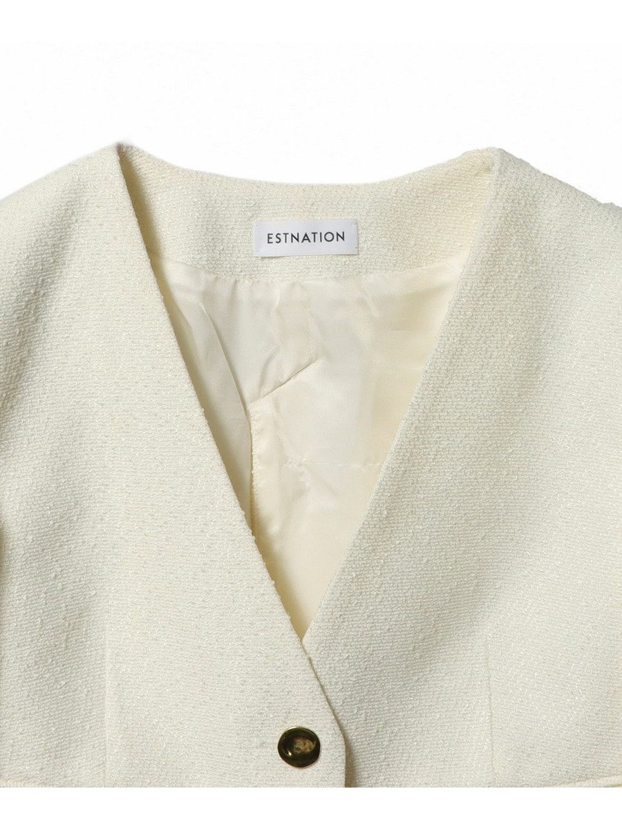 ESTNATION エストネーション ツイード ノーカラージャケット ESTNATION / リングツイード ノーカラーショートジャケット|ESTNATION