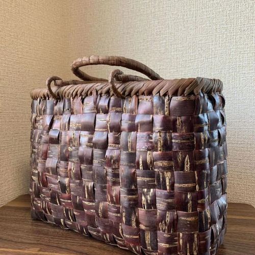 | 商品の特徴 | 桜皮、山葡萄 山葡萄籠バッグ 桜皮籠バッグ 手作り 桜皮かごバッグ。山葡萄かごバッグ 桜皮籠バッグ 手提げ 籠 保存袋付き 手作り A81。桜の皮カゴバッグ 【公式通販】。桜皮と山葡萄蔓の手作りかごバッグです。。山葡萄かごバッグ 桜皮籠バッグ 手提げ 籠 保存袋付き 手作り A82。本体幅約31cm 縦約23cm マチ約12.5cm内布あり、ポケットありよろしくお願いいたします。コヤンイサムチョン♡ハートバッグ♡ | ||