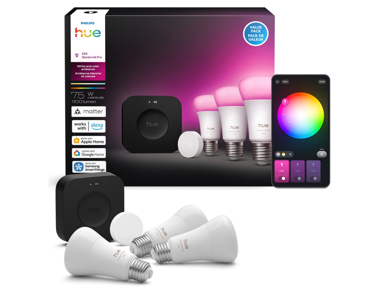 - ライト・照明 > その他 > Philips hue スマートライト 3個 スターターセット 3 A19 LED Bulbs E26 + Smart Button + Bridge Pro | Philips Hue