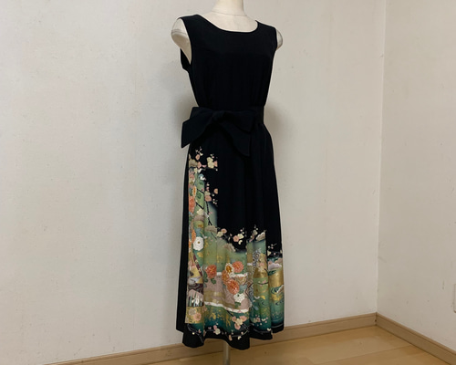 | メーカー | 着物リメイク ワンピース 黒留袖 駒刺繍 菊 金彩 ドレス |