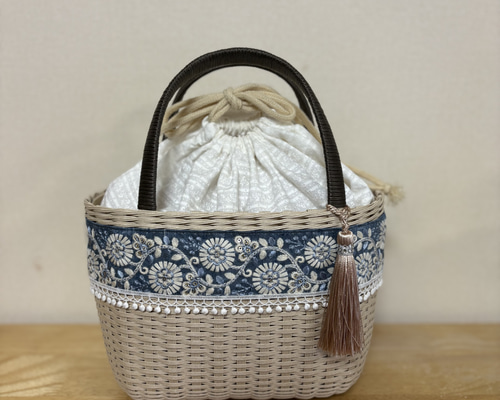 | メーカー | れ*ゃ様 コヤンイサムチョン インド刺繍生地のカゴバック ハンドメイド |