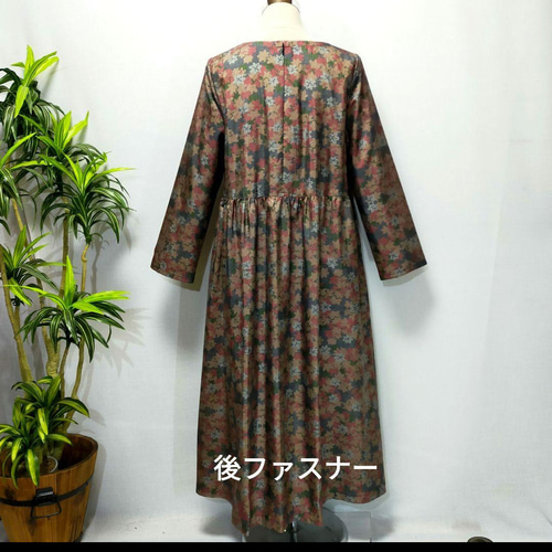 - レディース > ワンピース > ♪着物リメイク♪ 正絹 シックな茶紫地 ろうけつ染紬 小花模様 前開きワンピース ♪着物リメイク♪ 正絹 シックな茶紫地 ろうけつ染紬 小花模様 前開き
