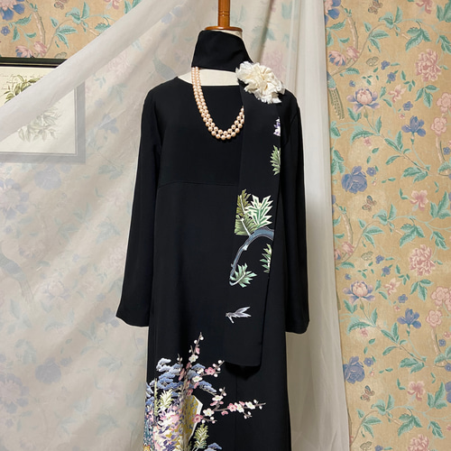 | メーカー | 着物リメイク ワンピース 作家物 友禅 黒留袖 ロング Aライン ドレス I様オーダー |