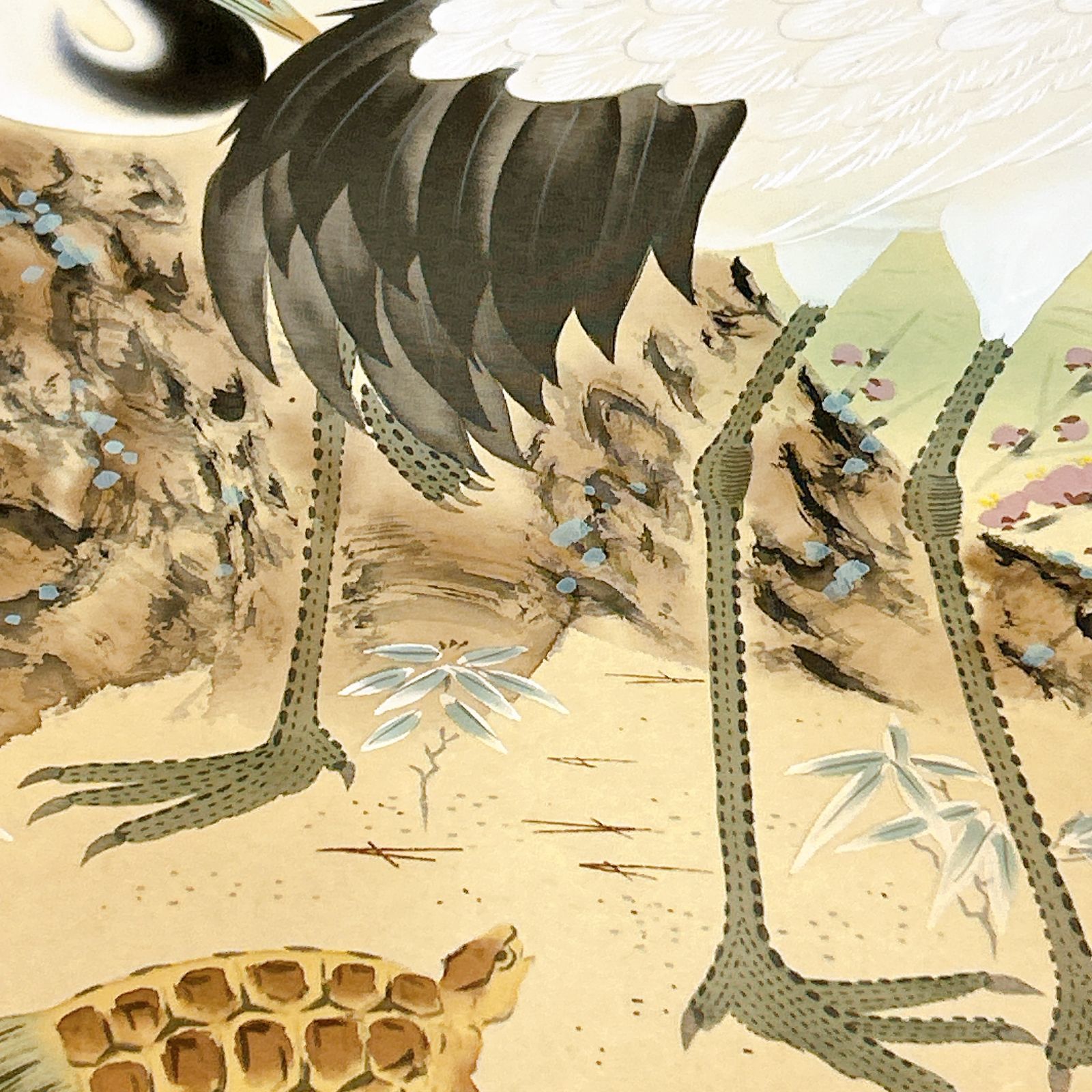 | 商品の特徴 | 掛軸 江川香夕 松竹梅鶴亀 風景画 双鶴図 双亀図 慶事掛け 掛軸 江川香。掛軸 江川香夕 松竹梅鶴亀 風景画 双鶴図 双亀図 慶事掛け 掛軸 江川香。掛軸 江川香夕 松竹梅鶴亀 風景画 双鶴図 双亀図 慶事。鶴と太陽を描いた美しい日本画の掛け軸です。松の下に二羽の鶴と亀が配され、背景には昇る太陽が描かれた、大変縁起の良い一幅となっております。【詳細】•主題: 鶴と亀は長寿の象徴、松は不老長寿を表し、吉祥を願う伝統的な画題です。•構図: 上部に赤い太陽、中央に仲睦まじい二羽の鶴、その足元に複数の亀が描かれています。•描法: 繊細な筆致で、鶴の羽の質感や松葉の表現が際立っています。•意味: 夫婦鶴は家庭円満と健康長寿を、鶴亀は家族の長寿・繁栄を象徴します。【吉祥の象徴】鶴と亀、松竹梅などの組み合わせは、日本画において長寿や繁栄を願う吉祥のシンボルとして古くから親しまれ、床の間をはじめ、おめでたい場面で飾られることが多い題材です。【状態】特に目立った破損や汚れはなく、全体として良好な保存状態です。※素人保管のため、経年劣化などが気になる方はご遠慮ください。【ご注意】写真の色合いは撮影環境やご覧の端末によって、実物と多少異なる場合がございます。ご覧いただきありがとうございます。。掛軸 江川香夕 松竹梅鶴亀 風景画 双鶴図 双亀図 慶事掛け 掛軸 江川香。【真作】菅茶山/七言絶句/二行書/掛軸☆宝船☆Z-543。織田観潮 寒山拾得図 美品 大正 日展委員 新大和絵 掛軸24111107。油彩画 「 ミモザ 」 原画 P6号。【真作】川島玉峰/岩上観音図/観音像図/カンノン図/掛軸/名家伝来/AD-683。林 道夫 油絵 額縁入り。直僊/直?/山水田家図/掛軸☆宝船☆Z-577。【真作】佛通寺管長/藤井虎山/一行書/壺中日月長/茶道具/掛軸☆宝船☆Z-614。絵画 龍 竜 白 那生裕 額入り 肉筆画 原画。【真作】大僧正/戒性/大師名号/南無大師遍照金剛/仏事掛/掛軸☆宝船☆Z-635。絵画① ニューヨーク New York マンハッタン 風景画 油絵 2012 | ||