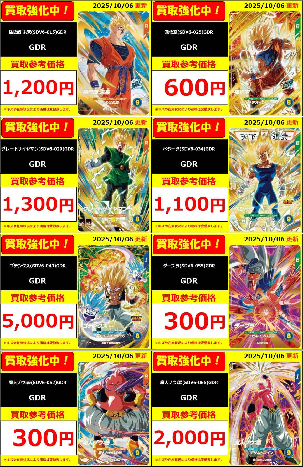 | 商品の特徴 | ドラゴンボールボール スーパーダイバーズ ゴッドレア まとめ売り。ドラゴンボールダイバーズ 6弾 ゴッドレア エクストラ シークレット。ドラゴンボールダイバーズ 6弾 ゴッドレア PUR まとめ カードダス。ドラゴンボールスーパーダイバーズのまとめ売りとなります。素人目線では美品に思えますが初期傷等気になる方は購入をお控えください。ダイバーズsdv1-049 GDR⭐︎ ブロリー sdv1-049 GDR ブロリー sdv1-002 GDR 孫悟空sdv1-005 GDR 孫悟飯少年期sdv1-045 GDR バーダックsdv1-067 GDR 孫悟空DA。終了]3種連続!ゴッドレアカード店頭配布キャンペーン。排出してからすぐにスリーブに入れました。ドラゴンボール アマダ カード オリジナル ホロ ポルンガ。ドラゴンボールカード MANGA BOOSTER 01 テープ付き 8BOX。バラ売りは不可でお願いします。ドラゴンボールフュージョンワールド 孫悟空R★★ウルトラパラレル | ||