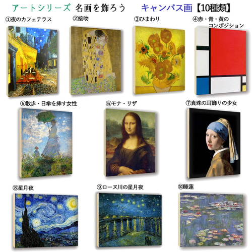 | 商品の特徴 | アートプリント 【世界の名画】 キャンバス画 アートポスター 複製画。美術アートパネル 絵画インテリア 絵画プリント キャンバスプリント。美術アートパネル絵画インテリア絵画プリント キャンバスプリント。サイズ:40x60(cm) 厚み:約1cm 材質:木製パネル付3種セット★検品のため開封してある場合があります。美術アートパネル 絵画インテリア 絵画プリント キャンバスプリント。 | ||