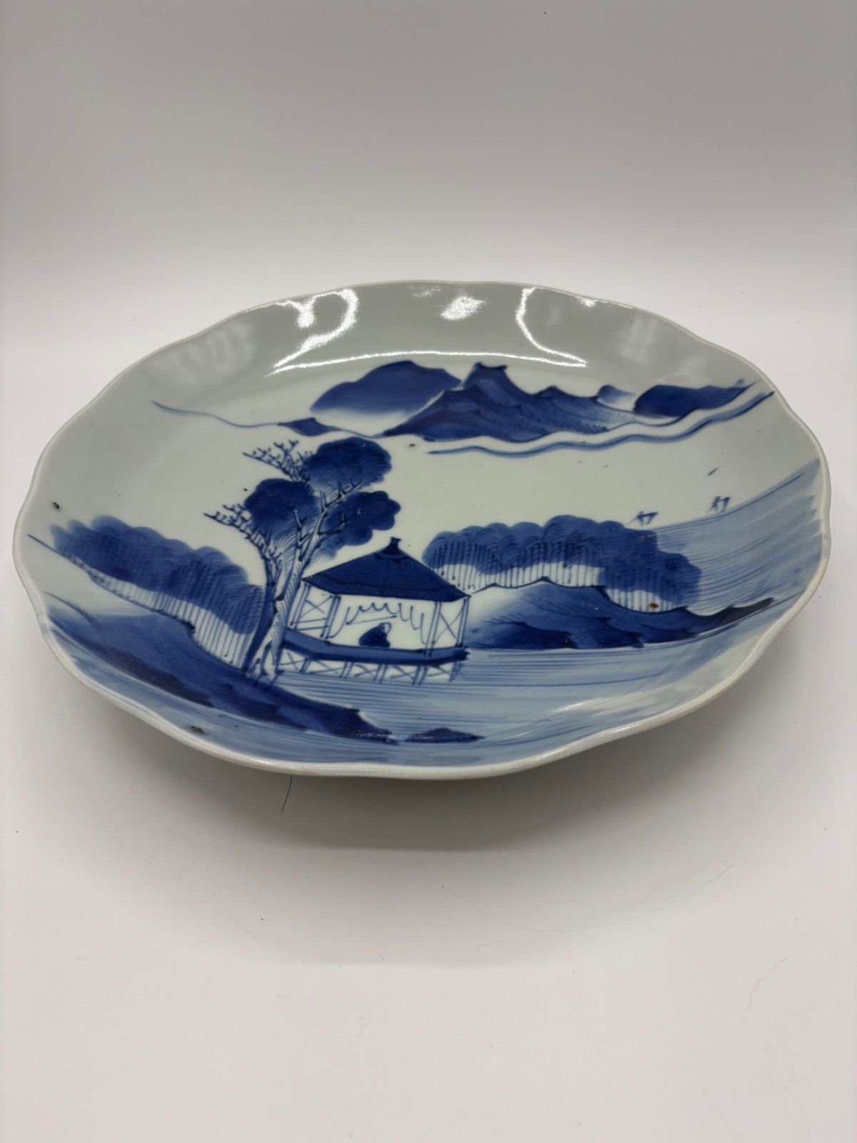 | メーカー | 古伊万里、染め付け、三花、楼閣山水、輪花深大皿江戸時代、 |